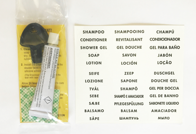 Die Seifenspender lassen sich zum bequemeren Nachfüllen einfach aus der Halterung herausnehmen. Farbgleiche Shampoos unterscheiden Sie durch die beschrifteten, wasserfesten Klebeetiketten (im Lieferumfang enthalten).